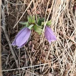 花葶2-4,直立,有柔毛;总苞钟形,长4-5厘米,筒长1.2-1.4厘米,裂片似基生叶的裂片,背面有密柔毛;花梗长约7.5厘米,有密柔毛,结果时增长;花近直立;萼片紫色,椭圆状卵形,长约2厘米,宽0.5-1厘米,顶端微钝,外面密被短柔毛。