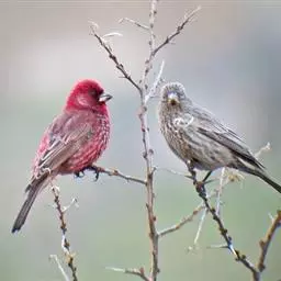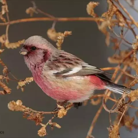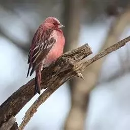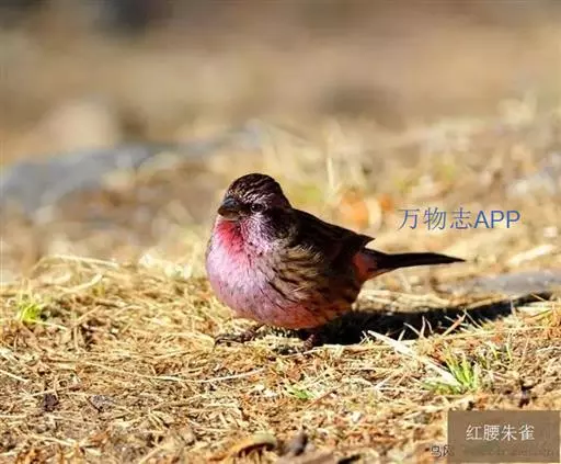 红眉朱雀(学名:Carpodacus pulcherrimus):体长15厘米,是一种中等体型的朱雀。上体褐色斑驳,眉纹、脸颊、胸及腰淡紫粉,臀近白。雌鸟无粉色,但具明显的皮黄色眉纹。雄雌两性均甚似体型较小的曙红朱雀,但嘴较粗厚且尾的比例较长。藏南亚种粉色较其他亚种为淡。虹膜深褐色;嘴浅角质色;脚橙褐色。