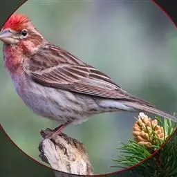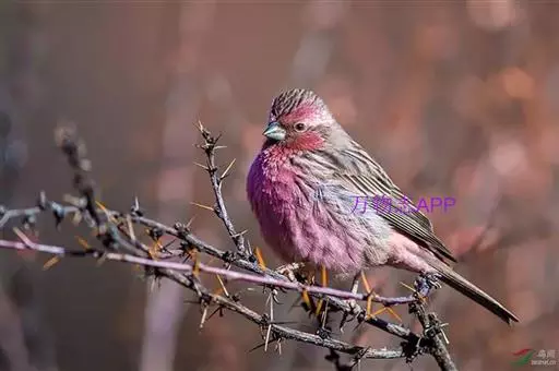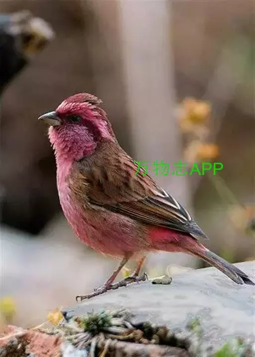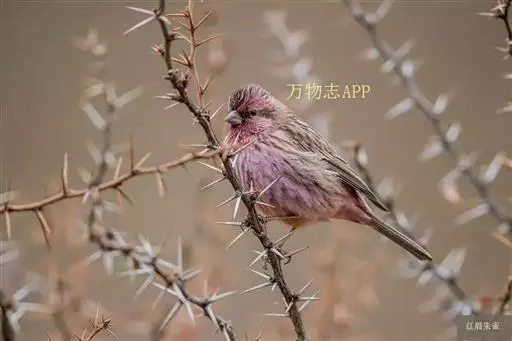 藏朱雀:全长约17-18厘米。雄鸟头部深红色具光辉,喉部暗红色具白色点斑;背部灰白色,各羽具玫瑰红…