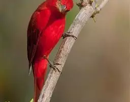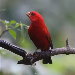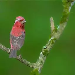 酒红朱雀小型鸟类,体长13~15厘米。雄鸟通体深红色,头部深朱红或棕红色,下背和腰玫瑰红色,…