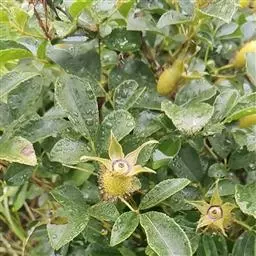 玫瑰:蔷薇科、蔷薇属的灌木;株高达2米;茎粗壮,丛生;小枝密生线毛,针刺和腺毛,有皮刺,淡黄色,…