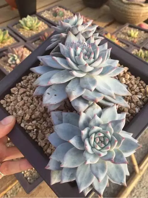 薄叶蓝鸟 叶片蓝绿色,叶尖红色,带粉,花型紧凑,非常漂亮。原产于墨西哥,现世界各地均有栽培。