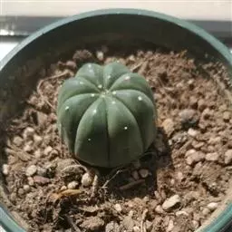 江守玉为仙人掌科强刺球属,植株扁圆形至球形,后成圆柱状,体色灰绿,刺座上附生白色绒毛,花橙黄色,漏…
