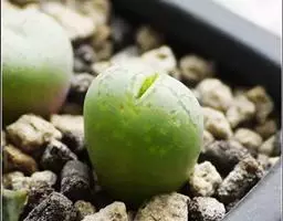 灯泡开花 表皮亮绿色,半透明状,夏季的休眠期,光照充足的环境中,表皮呈红色。花大型,淡紫红色,中心部位呈白色,春季或秋季开放。花通常在天气晴朗的白天开放,夜晚闭合,若栽培环境光照不足或阴雨天则难以开花。半透明状在直射光下可以看出它是半透明的,闪着微微发红的光泽因植株晶莹剔透,看上去亮晶晶的,酷似灯泡而得名,又因株型很像日本的富士山,故有“富士山”的别称。为多肉植物,植株无茎,一般为单头,偶尔也有双头,甚至3头、4头的群生植株。肉质叶半球形,单头直径2.5~4厘米或更大。灯泡,是一种非常迷人的小型多肉植物,其亮晶晶的植株光滑圆润,晶莹剔透,就像节日里闪烁的彩色灯泡(“灯泡”之名也因此而得),又像一颗璀璨光滑的明珠,清新自然而又高贵典雅,而且还能绽放出娇艳的花朵,适宜用小盆栽种,闲暇时细细观赏,领略其独特魅力。