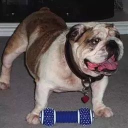 后腿比较短,骨骼和肌肉强壮,角度适中;从后面看,后躯笔直。狼爪可能已经切除。足爪与前肢相同。缺点与前肢同。