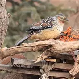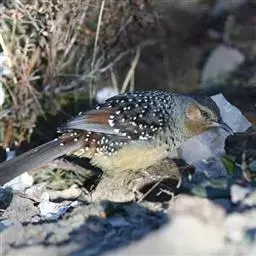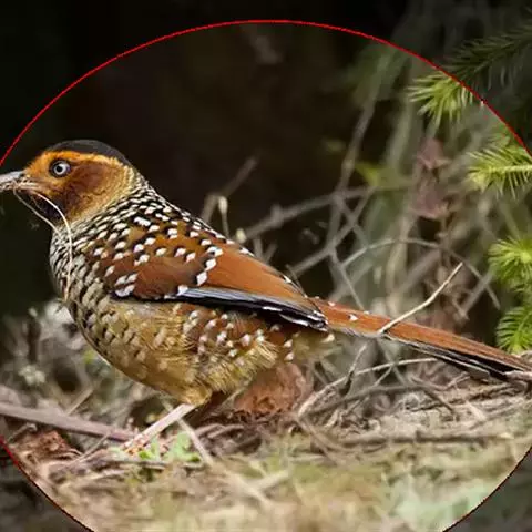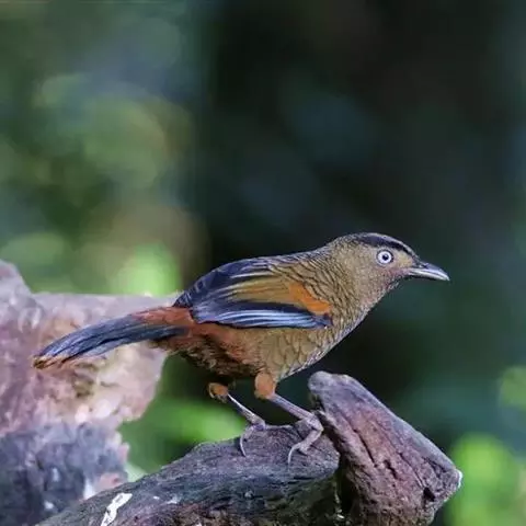 大噪鹛:中型鸟类,体长32-36厘米。额至头顶黑褐色,背栗褐色满杂以白色斑点,…