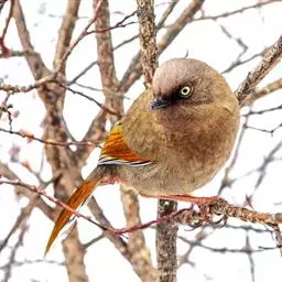 橙翅噪鹛:是噪鹛科、彩翼噪鹛属的中型鸟类,体长22-25厘米。头顶深葡萄灰色或沙褐色。上体灰橄榄褐色,…