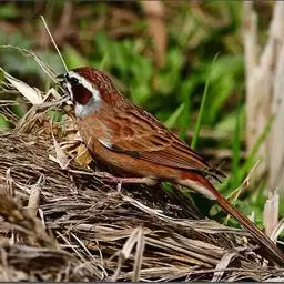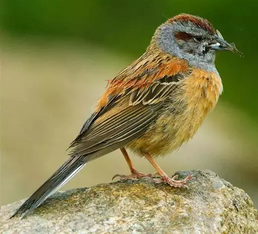 栗斑腹鹀:属小型鸣禽。体重19-25克,体长145-167毫米。头顶至背栗红色,眼先和颧纹黑褐色,…