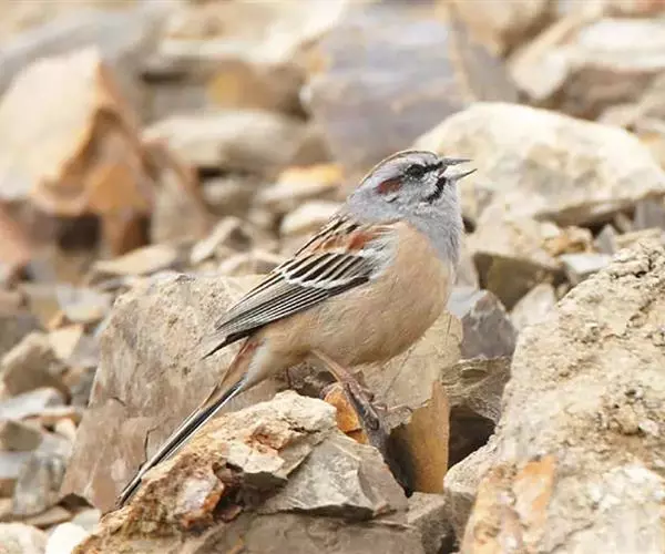 叫声:鸣声多变且似灰眉岩鹀,但由更高音的tsitt音节导出。叫声为细而拖长的tzii及生硬的pett pett声。