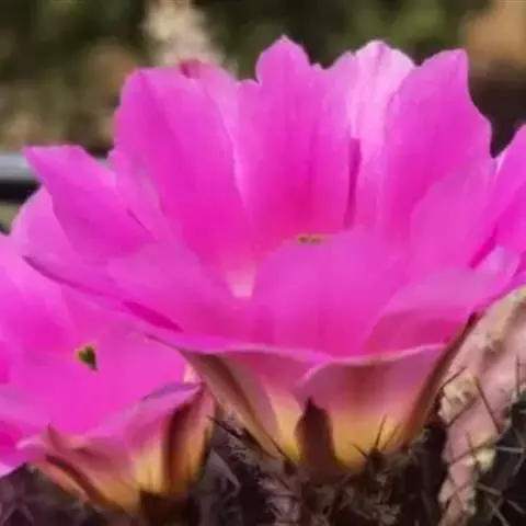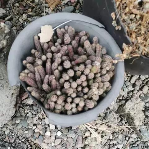 球体特殊,形似山核桃,相当有趣;花时色彩绚丽,繁花如锦,十分夺目;又适宜盆栽,是许多爱好者喜欢收集的品种。 幼株圆筒形,成年株椭圆形,有时也会萌生仔球。体色深绿色,球径5-6厘米,高8-10厘米,具5-6个肥厚的直棱,黄白色毛状刺1-3枚,易脱落。春季至初夏侧生粉红、紫粉、紫或白等色漏斗状的花,花径5-6厘米。