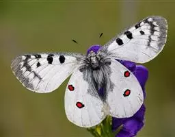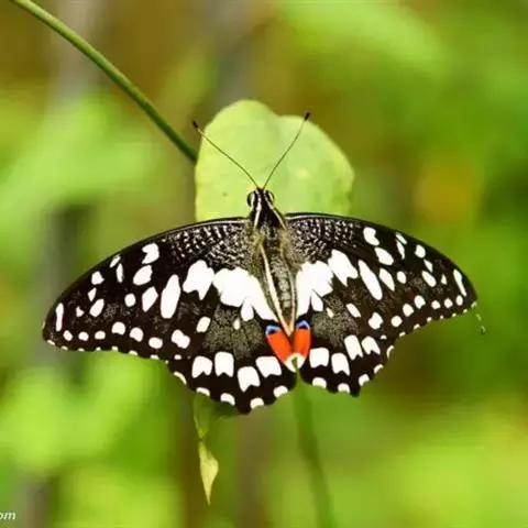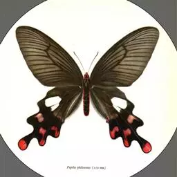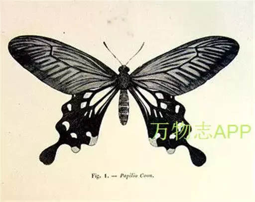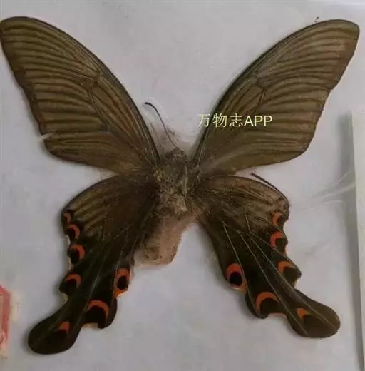 形态 成虫:翅展80—90 mm。翅黑色,脉纹两侧灰白色或黄褐色。两翅中室及前翅翅脉间有黑色条纹。后翅窄,向末端加宽,中室外有1列4—5个大白斑,外缘有5个红斑,尾突上有1个略呈圆形的红斑。翅反面与正面相似。
