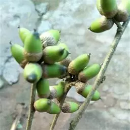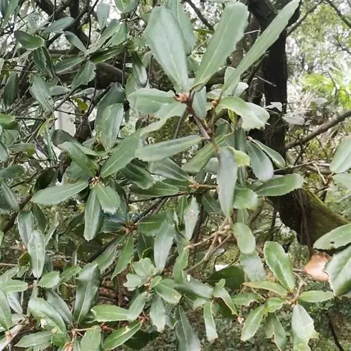 乌冈栎,壳斗科, 栎属,常绿乔木,高达10米或成灌木状。叶互生,革质。果长椭圆形,花期3-4月,果熟期9-10月。常生于山地岩石上。