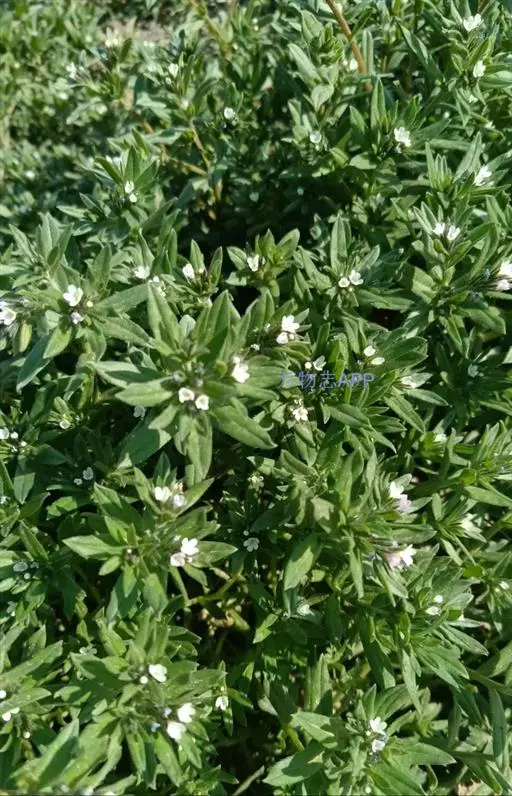 花序生茎和枝上部,长2-6厘米,果期延长;苞片与叶同形而较小;花萼裂片线形,长约4毫米,果实可达9毫米,背面有短糙伏毛;花冠白色,长7-9毫米,外面稍有毛,筒部长约4毫米,檐部与筒部近等长,裂片宽卵形,长2.5-3毫米,开展,全缘或微波状,先端有时微凹,喉部附属物半球形,无毛;雄蕊着生花冠筒中部稍上,花丝长约0.4毫米,花药长1-1.2毫米;花柱长2.2-2.5毫米,柱头头状。小坚果卵球形,乳白色或带淡黄褐色,长约3.5毫米,平滑,有光泽,腹面中线凹陷呈纵沟。花果期6-9月。