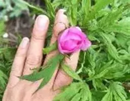 黑牡丹数量少,不好找。要想在一大片牡丹园中找到黑牡丹,得看那些牡丹花上有没有“保护伞”。如果有一片牡丹叶遮掩着一朵牡丹花,那下面就可能有黑牡丹。洛阳牡丹出名以后,不仅天底下的人爱看,连天上的神仙也爱看。一年春天,牡丹花开了,吕洞宾装扮成花花公子,来到洛阳北边的邙山上。他在一条沟壑之中,看到了一大片红牡丹,正看得入迷,突然有个如花美女从他身边飘过,吕洞宾见了,竟忘了看花,被迷住了。人家在前面走,他在后面跟。他想:如果能和这个美女说上几句话,也不虚此行了。