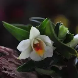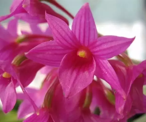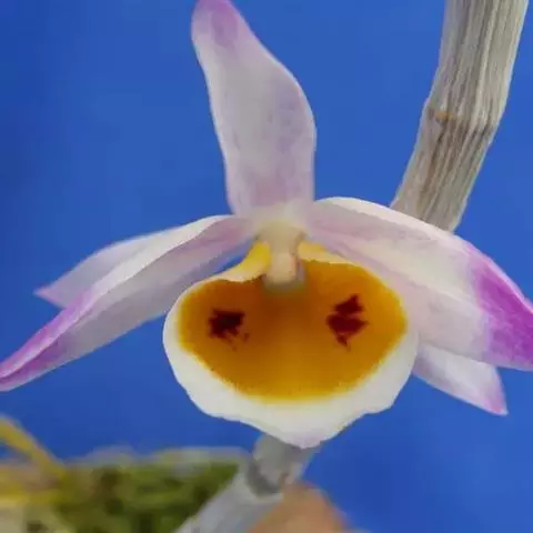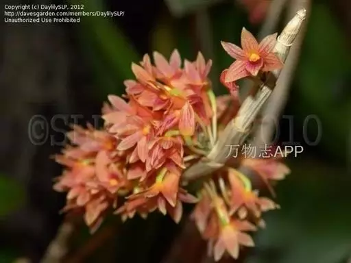 喉红石斛:附生。茎丛生,直立,粗短,近棒状纺锤体。叶2-4枚,生于茎顶。总状花序顶生,花序轴长5-…