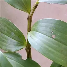 矮石斛:茎直立或斜立,粗短,纺锤形或短棒状,具许多波状纵条棱和2-5节。叶2-4枚,近顶生,革质,…