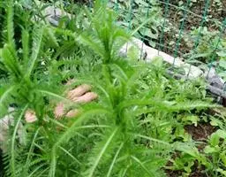 结合间定苗进行中耕除草,牛蒡植株生长缓慢,苗期最怕“草吃苗”,应及时中耕除草,直到植株封行为止,全生育期中耕除4-5次,同时进行根部培土,以利透气和保护根。培土时注意生长点不能埋入土壤。