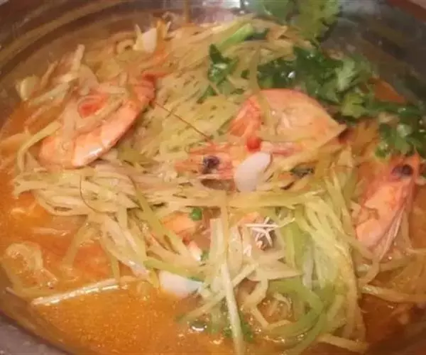 萝卜丝炖青虾是一道由青虾、青萝卜等做成的美食。