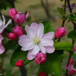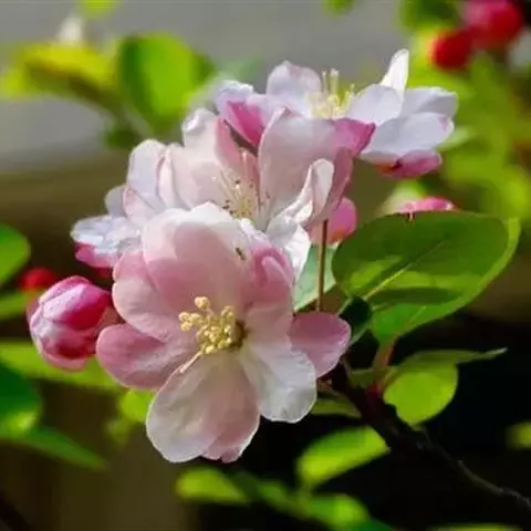 绚丽海棠可观花、赏果、看叶,是花叶果俱佳的园林树种。
