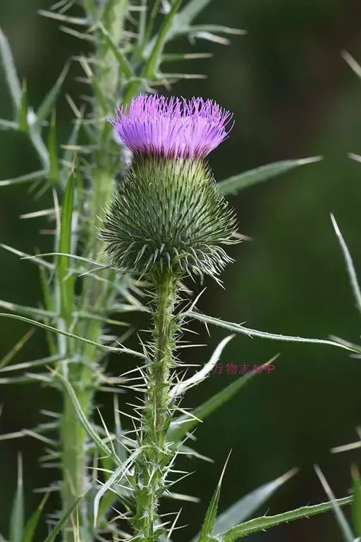 魁蓟菊科蓟属植物,多年生草本,高达1米,茎枝被长毛,基部和下部茎生叶长椭圆形或倒披针状长椭圆形,…