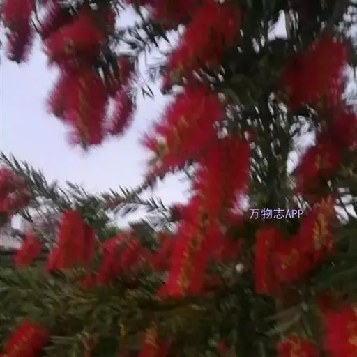 常绿灌木或小乔木,高可达6米;树皮暗灰色,不易剥离;幼枝和幼叶有白色柔毛。叶互生,条形,长3-8厘米,宽2-5毫米,坚硬,无毛,有透明腺点,中脉明显,无柄。穗状花序,有多数密生的花;花期长,较集中于舂末夏初,花红色,无梗;萼筒钟形,裂片5,脱落;花瓣5,脱落;雄蕊多数,红色;子房下位,蒴果顶端开裂,半球形,直径达7毫米。花期3-5月及10月,果熟期8月及12月。