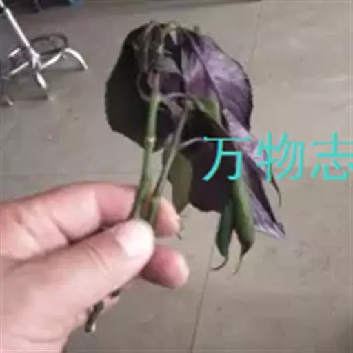 发病初期叶片出现紫黑色斑点,后扩大为近圆形暗褐色大斑。