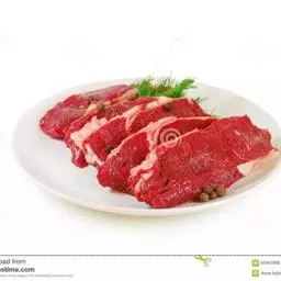 5、将肉切成长约10厘米、宽约5厘米的薄片装盘。