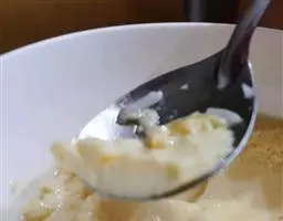 (2)大蒜捶茸,加盐、冷汤调成稀糊状,成蒜泥。