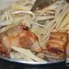 2、烧开半锅水,放入葱段、姜片、甘草片、花椒和五花肉,加盖以中火炖煮20分钟,熄火让五花肉焖30分钟。