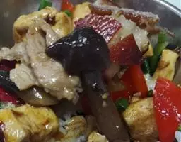 8、将汁淋在肉片上可可以开动了。
