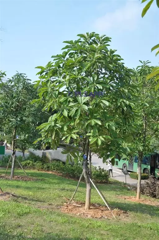 实生苗幼苗较耐庇荫,而抗寒性较弱,最好搭荫棚,能提高成活率。当真叶有4-6片后,逐渐揭去遮阴网。待苗高0.8-1.5米时更换营养袋(35厘米×35厘米),并施少量花生麸,此后追施复合肥1-2次。待株高2-2.5米时可定植,定植穴按比例1:2:1施放花生麸、树叶堆肥和复合肥作为基肥,而后每年春、秋两季分别施以追肥1次即可。亮叶木莲不耐旱,定植时除浇足定根水外,晴天特别是夏季炎热及干旱季节要注意进行浇水。至成年树抗病虫能力强。
