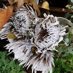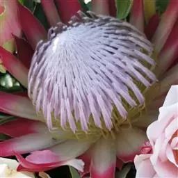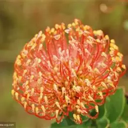 帝王花,山龙眼科帝王花属多年生常绿灌木植;茎干粗壮,叶色翠绿光亮;花朵呈圆球状;其苞片有的完全打开,…