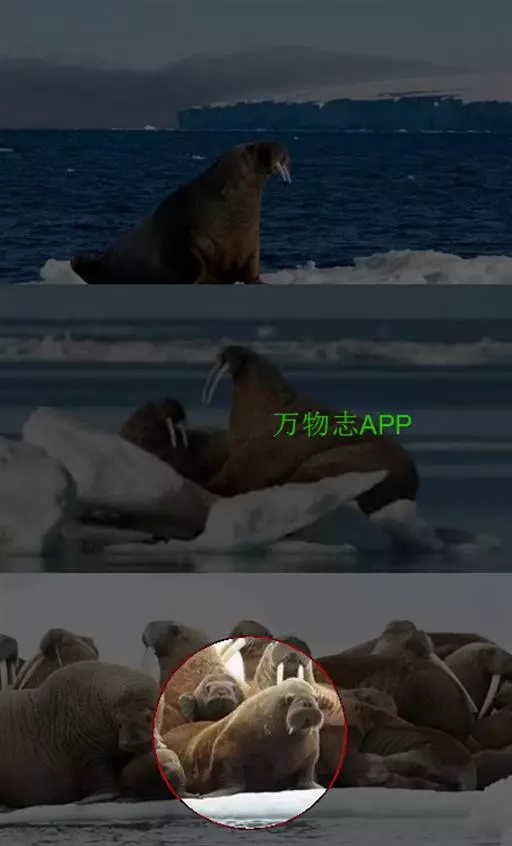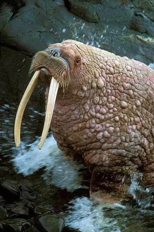 海象(学名:Odobenus rosmarus(Linnaeus,1758),海象科海象属的一种动物。顾名思义,即海中的大象,它身体庞大,皮厚而多皱,有稀疏的刚毛,眼小,视力欠佳。长着两枚长长的牙。 与陆地上肥头大耳、长长的鼻子、四肢粗壮的大象不同的是,它的四肢因适应水中生活已退化成鳍状,不能像大象那样步行于陆上,仅靠后鳍脚朝前弯曲,以及獠牙刺入冰中的共同作用,才能在冰上匍匐前进,所以海象的学名,若用中文直译便是用牙一起步行者,而且其鼻子短短的,缺乏耳壳,看起来十分丑陋。