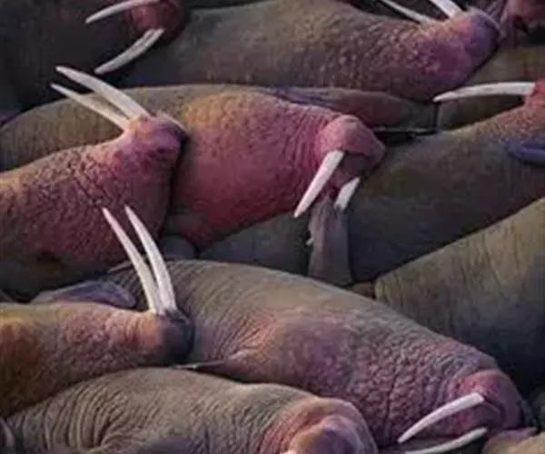 美国国家海洋和大气管理局发言人2014年10月1日表示,随着气候变暖及海冰融化,海象便游到海岸上,约有3.5万只海象集体搁浅在阿拉斯加西北部海滩上,并有约50只海象或因踩踏丧生。该机构将会对海象尸体进行尸检,以确认死亡原因。