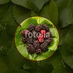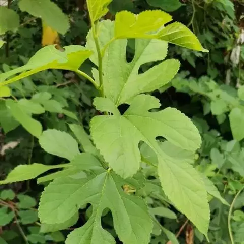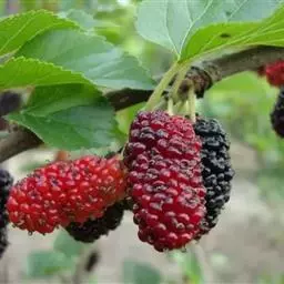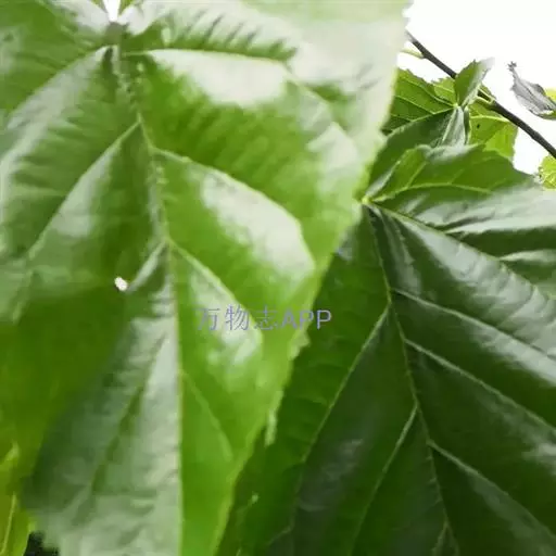 该变种和桑的区别在于叶大而厚,叶长可达30厘米,表面泡状皱缩;聚花果圆筒状,长1.5-2厘米,成熟时白绿色或紫黑色。