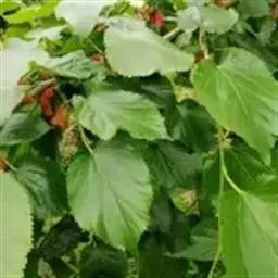 桑(拉丁名:Morus alba L.)是桑科,桑属 落叶乔木或灌木,高可达15米。树体富含乳浆,树皮黄褐色。叶卵形至广卵形,叶端尖,叶基圆形或浅心脏形,边缘有粗锯齿,有时有不规则的分裂。叶面无毛,有光泽,叶背脉上有疏毛。雌雄异株,5月开花,葇荑花序。果熟期6-7月,聚花果卵圆形或圆柱形,黑紫色或白色。喜光,幼时稍耐阴。喜温暖湿润气候,耐寒。耐干旱,耐水湿能力强。