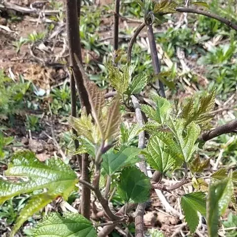 ⑵疏芽:待新芽长至4-5寸时进行疏芽,每株选留2-3个发育强壮、方向合理的桑芽养成壮枝。