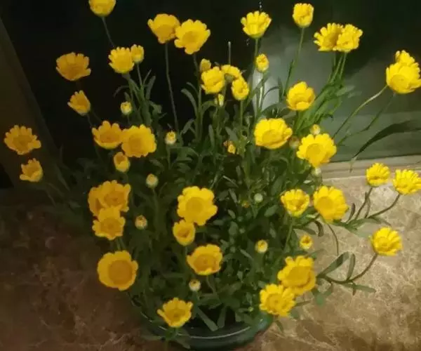 黄晶菊是二年生草本花卉,耐寒性强,开花早,花期长,花繁色艳,极具观赏性。叶色葱绿,头状花序顶生,盘状,中央筒状花聚成花心,外围舌状花扁平。成片栽培的黄晶菊,繁花遮叶,与同属异种的姊妹花白晶菊混植或组合盆栽,白黄点缀竞相开放,具有很高的观赏价值。黄晶菊适于露地花坛、花境种植,作镶边或色块构图效果良好;亦可盆栽,装点庭院、美化居室,是早春用于观赏和环境美化不可多得的优良花卉。