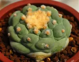 岩牡丹是仙人掌科、岩牡丹属多年生草本多浆植物。植株球形或呈扁平的莲座状,灰绿色,球体表面被白粉。…