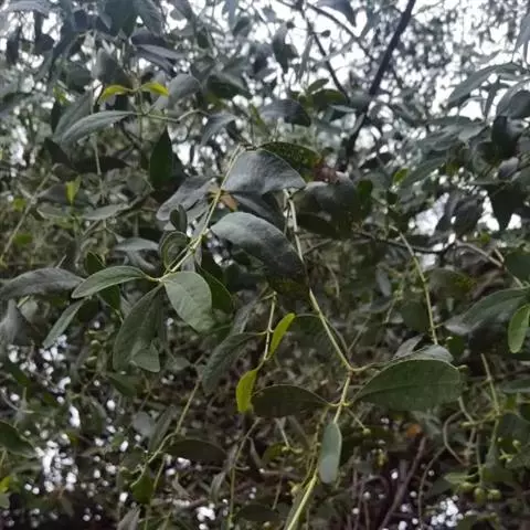 乔木,高15-20米,干圆柱形,有笋状呼吸根伸出水面;茎干灰色,幼时浅绿色。小枝纤细下垂,有隆起的节。叶对生,厚革质,椭圆形至长椭圆形,长5.5-13厘米,宽1.5-3.5厘米,叶柄淡绿色至粉红色。