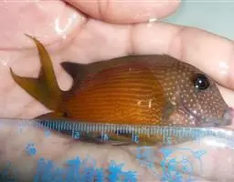 金菠萝鱼,Cichlasoma severum,慈鲷科丽体鱼属。成鱼体长20~25cm,厚侧扁形,…