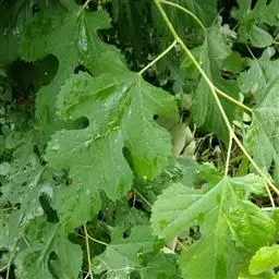 受害症状:该病多发生与枝条中下部的叶片上,发病初期,叶背产生白粉状圆形霉斑,在霉斑相应的叶面,出现淡褐色的斑块。病害严重时,霉斑扩大连接成片,白色粉末布满叶背。