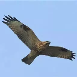 普通鵟:是鹰科、鵟属鸟类,属中型猛禽。体长54厘米,翼展122-137厘米,体重515-810克。…