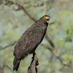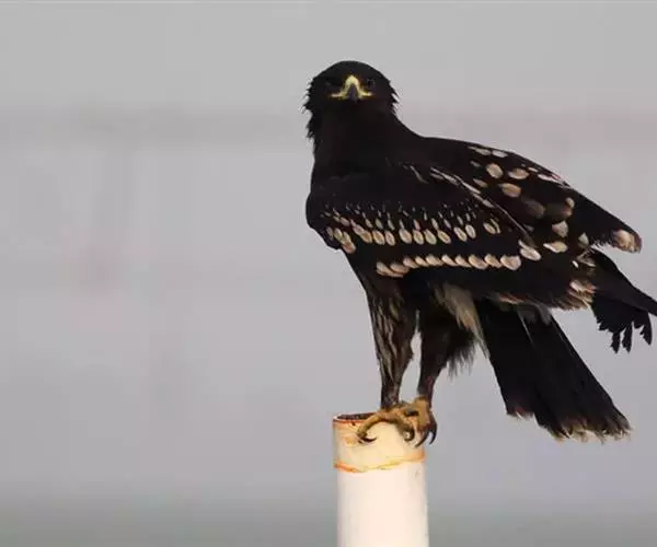 乌雕(学名:Aquila clanga Pallas),别名花雕、小花皂雕,属于国家二级保护动物。 乌雕体长61~74厘米,体重1.310~2.100千克,通体为暗褐色,背部略微缀有紫色光泽,颏部、喉部和胸部为黑褐色,其余下体稍淡。栖息于草原及湿地附近的林地,多在飞翔中或伏于地面捕食,取食鱼、蛙、鼠等动物,也食金龟子、蝗虫。 产于东北、华北、华东、中南及新疆。