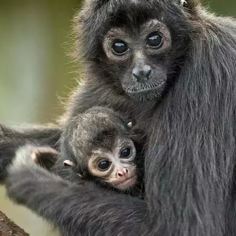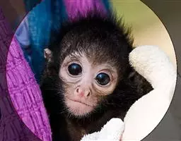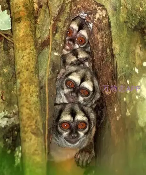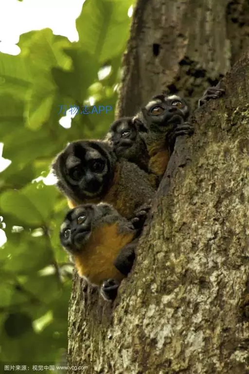 夜猴(学名:Aotus trivirgatus):体长240-370毫米,尾长316-400毫米。体重0.6-1.0千克。长相十分奇特,身体只有松鼠那么大,四肢特别细长。身上长满密毛,银灰色的皮毛柔软而浓密,上体杂有灰色和深灰,下体有浅黄色或棕色。它的眼睛集光能力很强,在近于漆黑的环境里,它照样能捕捉到正在飞行的昆虫。口吻不能完全合闭,耳朵相当小。下巴下方有可随意被膨胀并给出共振声音的的声囊。