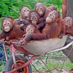 猩猩也叫人猿,灵长目人科 的一属,与猴子最大不同的地方就是没有尾巴,能用手或脚拿东西。马来语和印…