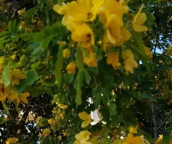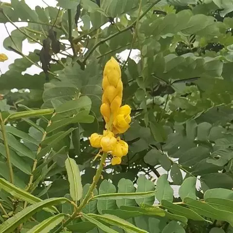 黄槐义称“黄仡槐”,是苏木科冬季落叫‘乔木。黄槐树姿优美,枝叫‘茂盛,花蕾娇小别致,花色金黄灿烂,在绿叶的衬托下:犹如翩翩起舞的蝴蝶,在阳光下,发出明亮而璀璨的光芒,富有热带特色,是美丽的观花树。