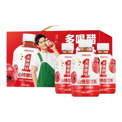 天地壹号推出的山楂醋饮料,口感酸甜,有助于开胃消食。