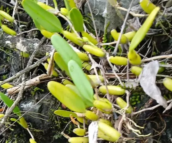 齿瓣石豆兰:根状茎纤细,匍匐生根。假鳞茎在根状茎上聚生,近圆柱形或瓶状,顶生1枚叶,基部被鞘或鞘腐…
