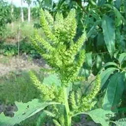 反枝苋是苋科苋属的一年生草本植物。株高达1米;茎密被柔毛;叶菱状卵形或椭圆状卵形,先端锐尖或尖凹,…